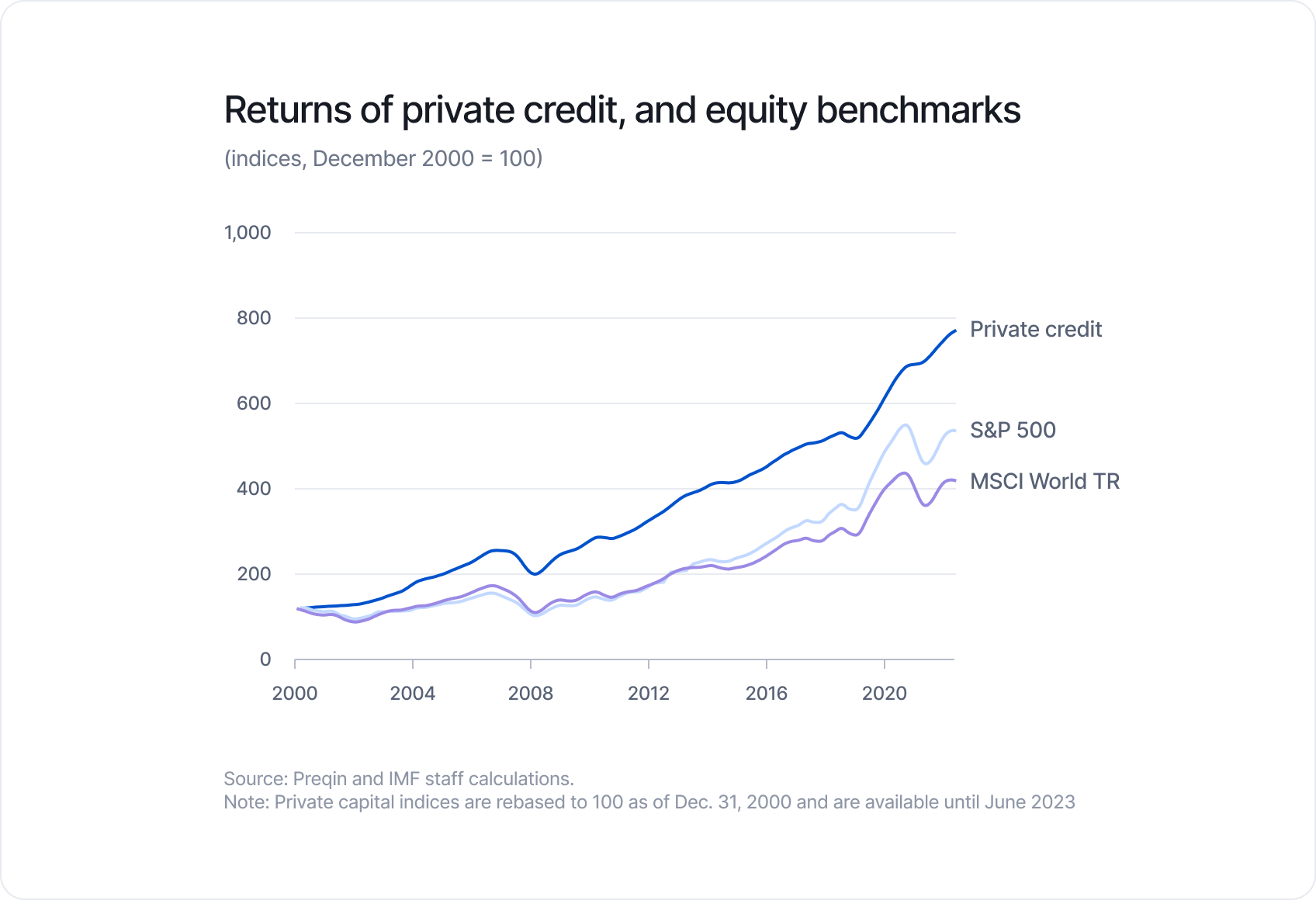 Throughout the 2010s and early 2020s, privately held companies increasingly turned to private credit to support their growth. Today, the global private credit market exceeds $1 trillion with significant potential for further expansion. It has also delivered higher returns compared to public asset classes.